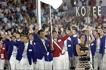 統(tǒng)一旗或朝鮮半島旗,為朝鮮民主主義人民共和國與大韓民國的運(yùn)動(dòng)員在大型運(yùn)動(dòng)會(huì)上共同走入會(huì)場所使用的代表作為全體朝鮮民族的旗幟。 2018年6月18日10點(diǎn),韓朝雙方?jīng)Q定在8月雅加達(dá)亞運(yùn)會(huì)上將共舉“朝鮮半島旗”入場。