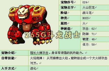 火山巨龍為斗龍戰(zhàn)士的寵物,分為三個(gè)形態(tài),具有極強(qiáng)的戰(zhàn)斗力,可以通過(guò)平臺(tái)買入或者孵化獲得。