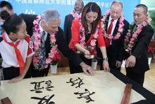 文藝匯演中,首都師范大學附屬朝陽實驗小學學生為國際友人及來賓獻上精心準備、且具有中國文化特色的歌舞表演,贏得國際友人、來賓、家長高度評價!匯演中,首師附小學生代表向遠道而來的客人,送上具有中國特色的巨幅剪紙,將活動推向高潮。最后,在熱烈的氣氛中,史蒂文森小學主席JohnAlexander與首都師范大學附屬朝陽實驗小學校長佟旌現(xiàn)場筆會,深情書寫“友誼長存”四個漢字,校長佟旌將飽含3000余名首師附小人真情的書法作品,贈予史蒂文森小學主席JohnAlexander,祝愿兩校友好合作、共同發(fā)展!