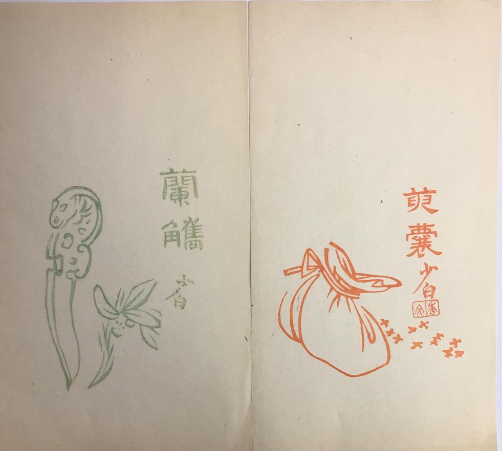 因其負(fù)有盛名,故舊時(shí)有多家南紙店用其所畫的畫當(dāng)作畫箋的圖案,清光緒時(shí)期秀文齋和解放后的朵云軒均以周少白畫為稿木板水印過箋紙。寥寥數(shù)筆,文人寫意小品,極為雅致。