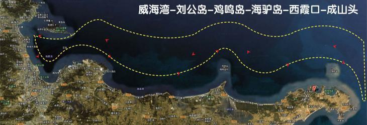 "僑鄉(xiāng)號"從金線頂碼頭出發(fā),沿威海灣幸福海岸線向北至威海灣北口,繞劉公島,向東行駛至成山頭。途徑幸福門、威海港、東山療養(yǎng)區(qū)、劉公島、牙石島、威海船廠、雞鳴島、龍眼港、西霞口風(fēng)景區(qū)、海驢島、成山頭風(fēng)景區(qū)等,海上往返航行時間約7個小時。航線二浪漫海灣夜-曉海觀日出