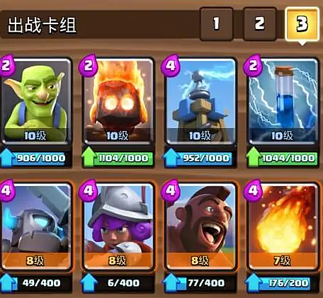 被克制卡牌:公主/火槍手/電擊法術/野蠻人滾桶/復仇滾木/女巫/法師