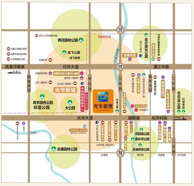 光華大道、培風(fēng)路、繞城高速、日月大道(成溫邛高速)、三環(huán)路、光華8線;