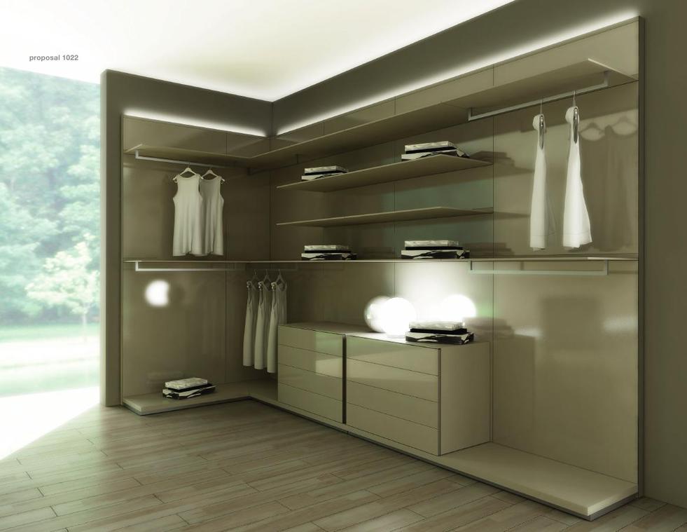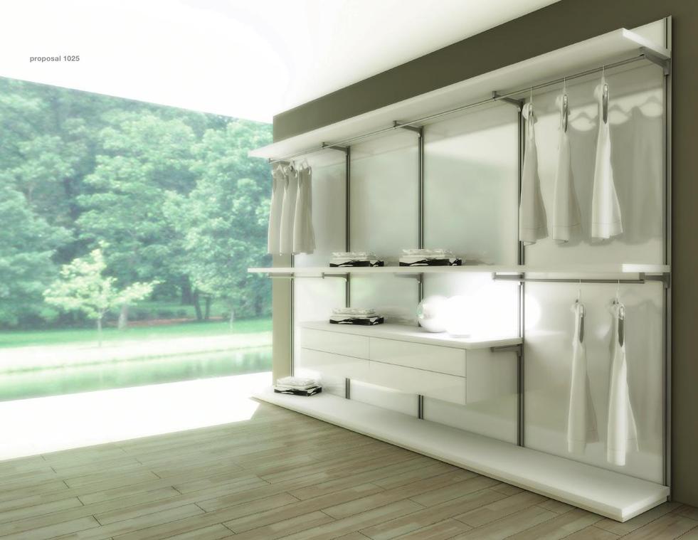 衣櫥組合的背板選擇備有白色密胺樹脂、黑斑木、新出品的環(huán)保胡桃木等表層修飾,以及亮身、反光和啞身焗漆玻璃。此等焗漆玻璃采用Rimadesio研發(fā)的「環(huán)保色彩系統(tǒng)」(Ecolorsystem),共有41種色調(diào)。此外,訂制的背光玻璃板亦深受用家歡迎。