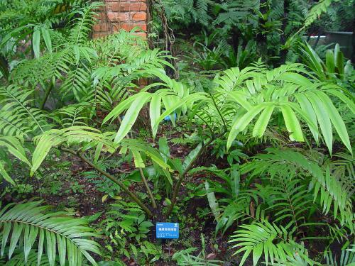植株高大。葉柄未見;羽片長圓形,長48厘米,下部寬20厘米,上部寬30厘米,羽柄長6厘米,褐色,光滑,羽軸頂端無翅;小羽片7對,基部的相距2.5厘米,上部的4.5厘米,近對生,柄長1.5-2毫米,基部小羽片長10-12厘米,平展,上部小羽片長16-22厘米,寬2.6-3厘米,闊披針形,基部圓形,兩側不對稱,上側截形,離羽軸較遠,下側為圓形,離羽軸近,邊緣有淺鈍鋸齒。葉脈開展,分叉或單一,平行,先端兒不向上明顯彎弓,下面可見,上面不明顯,先端膨大,入于齒牙內(nèi),沒有倒行假脈。葉紙質,上面深綠色,下面綠色,兩面光滑。孢子囊羣長圓形,長2毫米,彼此接近,有孢子囊14-18個,距平伏的邊緣1毫米處著生,先端不育。