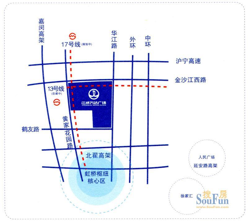 交通出行地鐵:軌交13/17號(hào)(在建)—華江路站,公交:安虹線、121、158、561路—華江路金沙江西路