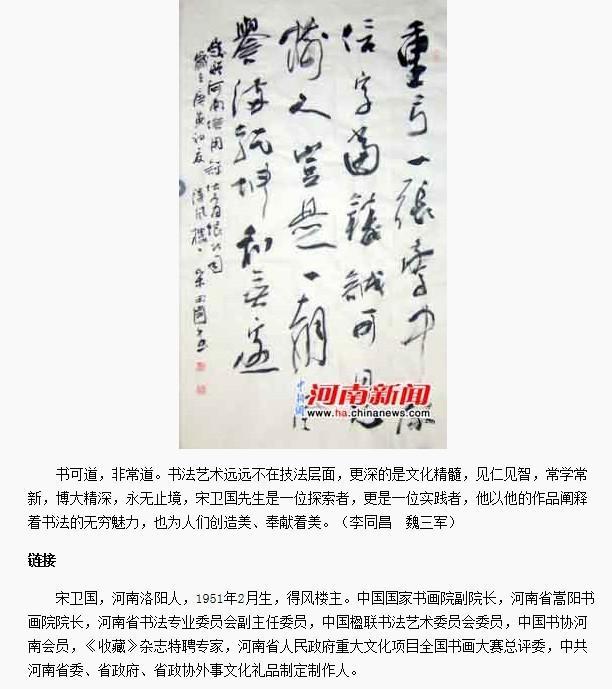 8、2014年魏三軍在中國新聞網(wǎng)河南新聞發(fā)表文章:宋衛(wèi)國:書印隨古法賦詩有新風(fēng)。成為中國新聞網(wǎng)河南新聞自由供稿人。