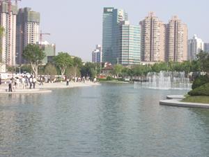 太平橋綠地占地面積約4公頃,該綠地規(guī)劃立意高,以湖光、山色、叢林為特點,旨在創(chuàng)造現(xiàn)代城市山水園林的景觀面貌。設計師在綠地中布置了近一公頃面積的水體,并以此為主體使整個綠地構(gòu)成了沿東西長軸方向三個層次的園林景觀,即綠地北側(cè)寬闊的湖濱親水臺階和平臺、中部開闊的湖面水景,南側(cè)山林草坡。整個綠地構(gòu)圖簡潔,氣勢恢弘,山體、湖面、綠化互為襯托,相映成輝,相得益彰,游人可以環(huán)湖游覽,亦可順著湖濱親水臺階貼近湖面;或沿山間小徑,登高遠眺,充分享受美好的湖光山色。作為中共一大會址旁的大型綠地,設計師充分考慮了它與一大會址的關(guān)系,巧妙地利用了興業(yè)路路端,設計了一個親水平臺式的小廣場,伸入湖面,使游人能夠在綠地中更好地眺望一大會址,同時也能使人聯(lián)想到黨的誕生之地“南湖”。