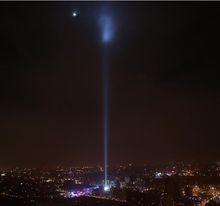 “北京之光”是安裝在中華世紀(jì)壇的大型燈光藝術(shù)裝置,是一束直徑11米照向夜空的光柱,若氣候條件允許,居住在四環(huán)內(nèi)的居民都能看到這束照向天際的白色光柱。