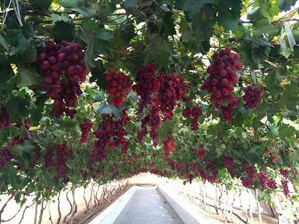 在中國(guó)葡萄栽培區(qū)中,烏海地區(qū)屬于第三區(qū)-中溫區(qū)一個(gè)獨(dú)立的栽培區(qū)。所產(chǎn)葡萄含糖量高,酸度適中,色澤鮮艷,香氣濃郁,病蟲(chóng)害少,無(wú)農(nóng)藥污染,品質(zhì)極佳,曾多次榮獲國(guó)家和自治區(qū)獎(jiǎng)。無(wú)核白葡萄:果皮顏色綠黃色;紅地球葡萄:蠟質(zhì)厚,果粉勻,肉硬脆,種子深褐色,顆粒內(nèi)向一側(cè)及各果粒果蒂周圍也著色鮮紅;森田尼葡萄:淡黃綠色,果粉完整。