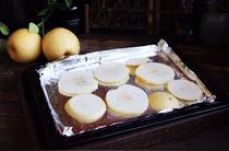 步驟五 | 將梨片平鋪在烤盤上。 |