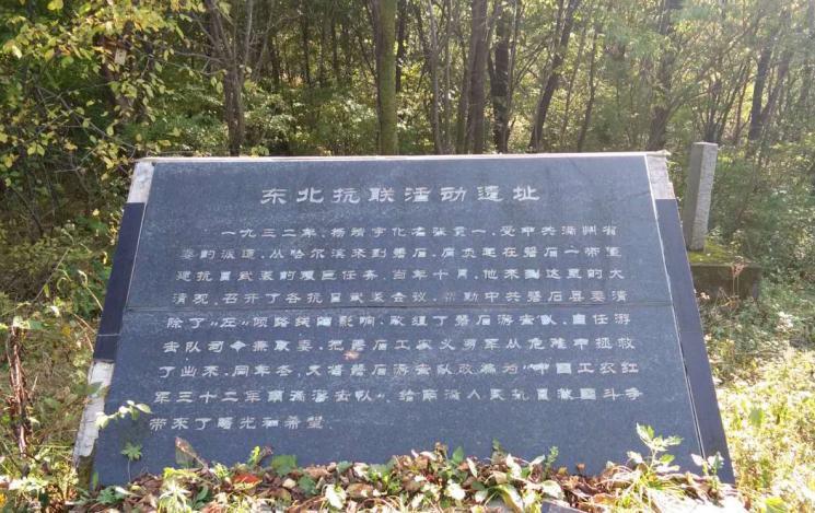 抗戰(zhàn)勝利初期,由磐石縣政府出資建造兩座紀(jì)念碑。面朝東方為東北抗聯(lián)活動遺址紀(jì)念碑,面朝西南為石虎溝紀(jì)念碑,二碑遙相呼應(yīng),寓意著抵御外來侵略,保衛(wèi)東北河山。當(dāng)年10月,他來到這里的大清觀,召開了各抗日武裝會議,肅清了隊伍內(nèi)部一些不良分子和與“常占”關(guān)系密切的人,純潔了隊伍成分,改組了磐石游擊隊,自任游擊隊司令兼政委,把磐石工農(nóng)義勇軍從危難中拯救出來。同年冬,又將磐石游擊隊改編為“中共工農(nóng)紅軍三十二軍南滿游擊隊”,指出要建立鞏固磐石游擊根據(jù)地,發(fā)展抗日武裝,堅持抗日游擊戰(zhàn)爭的正確方向。通過石虎溝整黨整軍,使磐石黨的工作游擊斗爭均得到發(fā)展和壯大。烈士紀(jì)念地