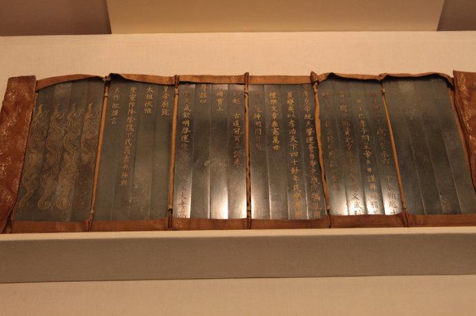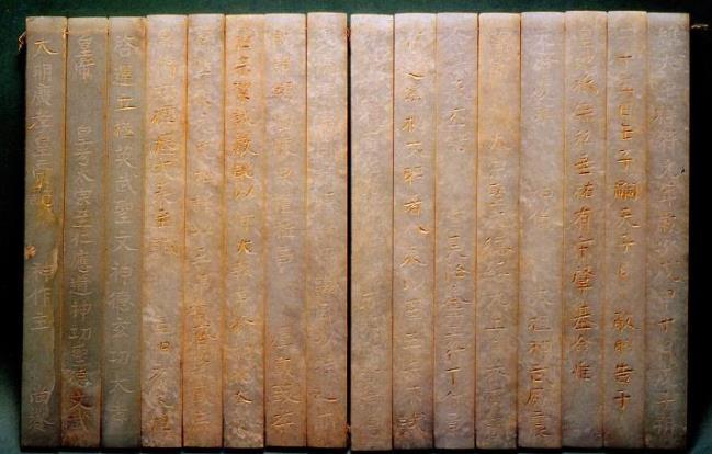 唐代和宋代。玉器。泰山出土?,F(xiàn)藏于臺(tái)北故宮博物院。 玉冊(cè)是中國(guó)古代帝王祭祀告天的冊(cè)書,也就是天子受命于天的任命書,材質(zhì)雖然是玉,但模仿漢代以前竹簡(jiǎn)和木簡(jiǎn)的形制制作。20世紀(jì)30年代在泰山出土了唐玄宗李隆基和宋真宗趙恒的封禪泰山玉冊(cè),是我國(guó)古代玉冊(cè)的代表作。