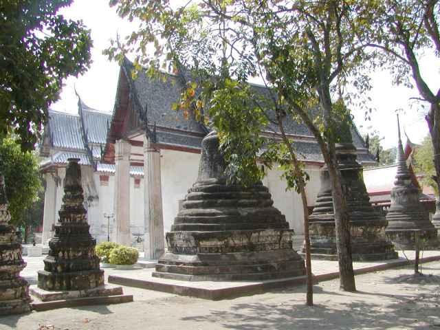 :為大城時(shí)代的敕封名剎,曾數(shù)次被修葺。此寺廟的特色為沒(méi)有窗戶,寺內(nèi)壁畫有300 多年的歷史,且有精美的雕刻。曼賓行宮