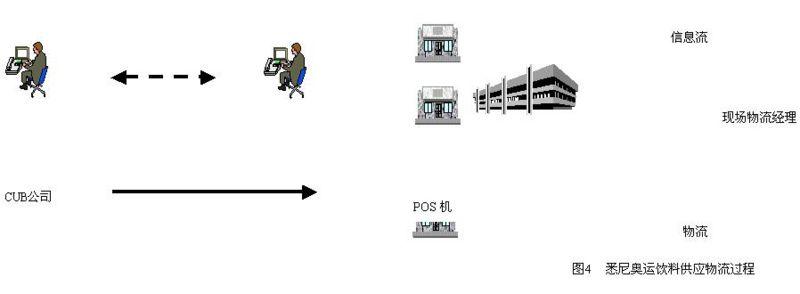 奧運(yùn)會(huì)舉辦期間,每天需要大量的各種物品的供應(yīng),為了在保障供應(yīng)的同時(shí)又不致占用大量庫(kù)存,供應(yīng)商往往精心組織對(duì)奧運(yùn)會(huì)的供應(yīng)物流服務(wù)。如圖4所示,悉尼奧運(yùn)會(huì)飲料供應(yīng)商CUB公司在35個(gè)賽場(chǎng)安裝了405個(gè)POS機(jī),為保證每個(gè)POS機(jī)在奧運(yùn)會(huì)期間儲(chǔ)存充足的飲料,CUB配備了22個(gè)現(xiàn)場(chǎng)物流經(jīng)理,采用供應(yīng)商管理庫(kù)存(VMI)的方法,通過(guò)掌上電腦查看庫(kù)存,進(jìn)行預(yù)測(cè)和訂貨,取得了擴(kuò)大銷(xiāo)售、減少成本和消除缺貨的效果。