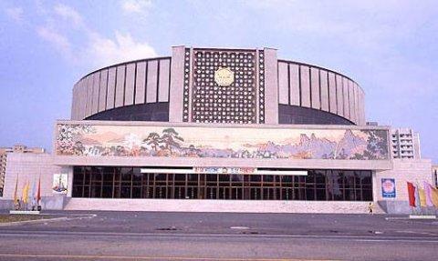 大劇院的化妝室、休息室都布置得很優(yōu) 美,適合演員的演出活動(dòng)。萬壽臺(tái)藝術(shù)團(tuán)藝術(shù)家在改建的東平壤大劇院演出文藝節(jié)目,場(chǎng)場(chǎng)爆滿。樂團(tuán)來訪