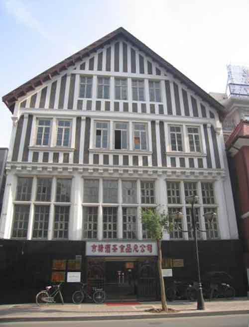 該建筑東沿臺兒莊路,南抵泰安道,西臨解放北路,北臨太原道。建筑面積3020平方米,為磚木結(jié)構(gòu),由英國永固工程師庫克(Cook)和安德森(Anderson)設(shè)計。紅磚外墻,正面外墻飾以麻石表面,并用上升感極強(qiáng)的白色直線裝飾條紋。整棟樓紅白相間,色彩活潑,具有濃郁的巴伐利亞建筑風(fēng)格。建筑現(xiàn)狀良好