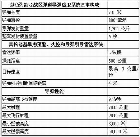 2004年7月29日,美國海軍在位于加利福尼亞太平洋海岸的一個空戰(zhàn)中心發(fā)射了一枚近程“飛毛腿”彈 道導(dǎo)彈,以色列改進型箭(Arrow)-2戰(zhàn)區(qū)彈道導(dǎo)彈防衛(wèi)系統(tǒng)予以準確定位,并發(fā)射和引導(dǎo)一枚攔截導(dǎo)彈摧毀“目標”。而美國洛·馬公司最新型的“愛國者”PAC-3/3導(dǎo)彈和俄羅斯“金剛石”科學(xué)生產(chǎn)聯(lián)合公司的最新型“凱旋”S-400導(dǎo)彈最高飛行速度約6倍音速,在2003年11月20日,歐洲EADS/LFK公司設(shè)計的一枚HFK E1高超聲速導(dǎo)彈在首次測試中也只是剛剛達到7倍音速。以色列箭-2導(dǎo)彈系統(tǒng)配套的“綠松”地基早期預(yù)警、火控和導(dǎo)彈引導(dǎo)雷達探測距離達到500公里而且能夠追蹤飛行速度3,000米/秒的高速目標,并將攔截導(dǎo)彈引導(dǎo)到目標4米之內(nèi),是世界上作戰(zhàn)能力最強的預(yù)警雷達。相對比“凱旋”S-400探測距離為400公里,箭-2系統(tǒng)配套的“香緣樹”作戰(zhàn)管理/火控中心,能快速確定導(dǎo)彈的位置、彈道和預(yù)知的沖擊點,同時不斷搜集和計算分析新的數(shù)據(jù)來確定最佳攔截點,是世界上自動化程度最高、最先進的管理/火控系統(tǒng)。