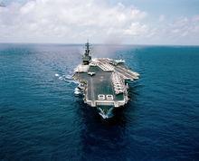 20世紀60年代初期,美國海軍完成了全球首艘核動力航空母艦“企業(yè)”號(USS Enterprise)的建造,但由于 造價過于昂貴,美國海軍并未繼續(xù)建造后續(xù)艦,而是在同一時期繼續(xù)建造成本較低的福萊斯特級航空母艦,其造價只相當于“企業(yè)”號的一半多一點。福萊斯特級建造于20世紀50年代,雖然當時被稱為“超級航空母艦”,但在前幾艘的服役過程中仍發(fā)現(xiàn)了一些不足,一些因設計建造而導致的缺點日漸顯露,尤其是其升降機的配置不夠理想。1956至1968年期間,美國從建造第5艘福萊斯特級時,開始進行大幅度改進,由于改進較大且連續(xù)建造了4艘,因此將其重新命名為小鷹級航空母艦,其最初是作為攻擊型航母而設計建造的。建造沿革