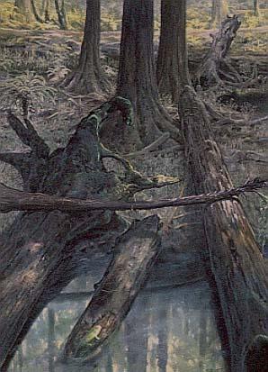 ①樹沼或森林沼澤,一般為淡水,覆水淺,有高大喬木和灌木共生,因植物生長繁茂,遺體大量堆積,易形成厚的泥炭層。