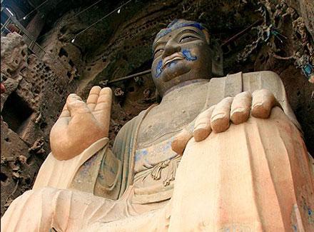 懸崖大像即甘谷大象山石窟,位于天水市甘谷縣境內(nèi)距縣城五華里處。那里有一座正看如旗,橫看似龍的山巒拔地而起,舊名文旗,現(xiàn)名大象山。山上松檜叢生,丁香溢彩,亭臺(tái)樓閣依山而建,雕棟畫廊綠樹掩映。山中懸崖間,峭壁上有大洞窟一個(gè),洞內(nèi)坐石胎泥塑大佛一尊。據(jù)考證,甘谷塑佛造像可遠(yuǎn)溯北魏,先后共經(jīng)歷了四個(gè)朝代,三百多年。大佛洞窟兩旁,依山附勢(shì)修有長(zhǎng)長(zhǎng)的走廊,如同一條腰帶。廊上窟龕相連,巍峨壯觀,現(xiàn)存二十二個(gè)窟龕,大都平面近方形。正壁開大圓拱龕和設(shè)高壇基,并有僧人修行的禪窟,這是大象山窟龕特殊之處,在全國(guó)也很罕見。甘谷大佛為釋迦牟尼佛。大象山自從以大佛聞世更名后,世人一直沿稱大像山。佛教協(xié)會(huì)會(huì)長(zhǎng)趙樸初在深入研究了佛的出生、歷史、典故后,根據(jù)釋迦牟尼“乘象入胎”的傳說,認(rèn)為起名大象山更為確切。雖僅一字之差,且同音,但意義深遠(yuǎn)。從此大像山景正式命名為大象山了。1981年9月10日,甘肅省人民政府將大象山石窟正式列為省級(jí)文物保護(hù)單位,并撥專款進(jìn)行維修。2001年該石窟升格為國(guó)家級(jí)文物保護(hù)單位。