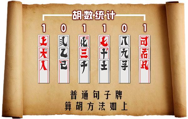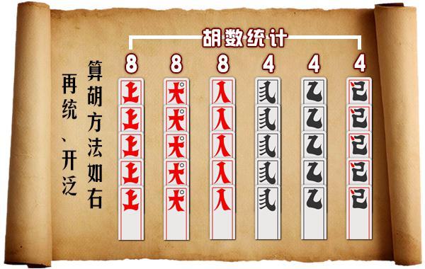 例如:假設(shè)判定三為主精,則普通“化三千”為2胡,“化、花三、千”為4胡。