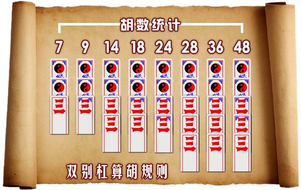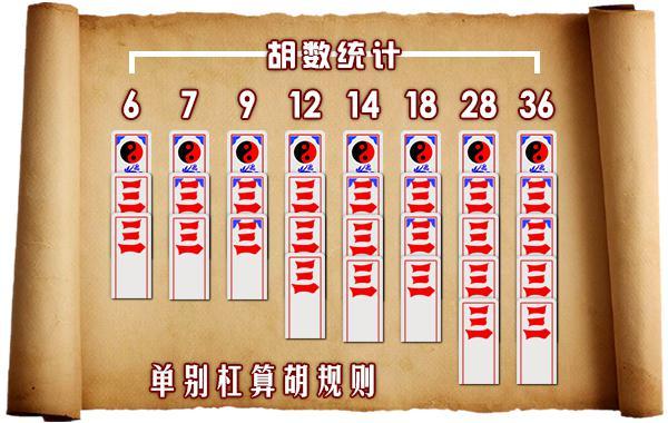 別杠只可以充當(dāng)“花三”、“花五”、“花七”,類似麻將中的賴子。