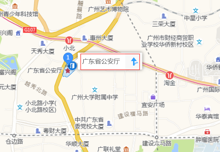 2、搭乘公交車至小北路,在小北花圈站下車后步行約5分鐘至廣東省公安廳。途經(jīng)小北花圈站的公交車有6路、10路、36路、66路、184路、190路、191路、219路、220路、233路、544路及864路。