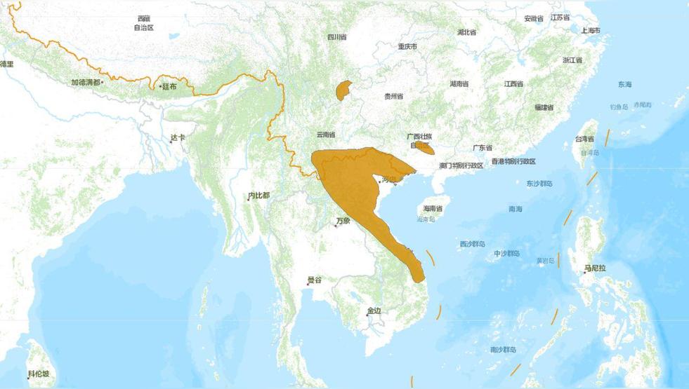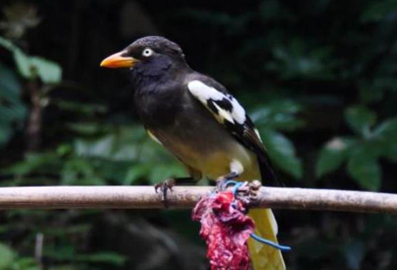 白翅藍鵲(拉丁學名:Urocissa xanthomelana):體長46厘米,是一種體形大而色彩獨特的黑白色藍鵲。尾楔形,嘴橘黃,下體的頦、喉和上胸暗灰褐;下胸至尾下覆羽由羽基至末端由灰色、淡灰而轉(zhuǎn)為末端的白色。身體健壯。在樹間滑翔,兩翼平展開,顯露出醒目的黑白色圖紋。幼鳥灰褐色替代黑色,嘴及虹膜褐色較重。翼上帶斑及尾羽羽緣都是黃色。虹膜黃綠色;嘴橘黃,基部偏綠或偏褐色;腳黑色。 棲于森林、林緣及次生林和有林的農(nóng)作區(qū)。分布于越南、老撾、汶萊以及中國四川、廣西等地。