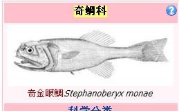 奇鯛科,動物界、脊索動物門、脊椎動物亞門、硬骨魚綱、奇鯛目、奇鯛科,二名法是Stephanoberycidae,分布于大西洋、印度洋及太平洋。