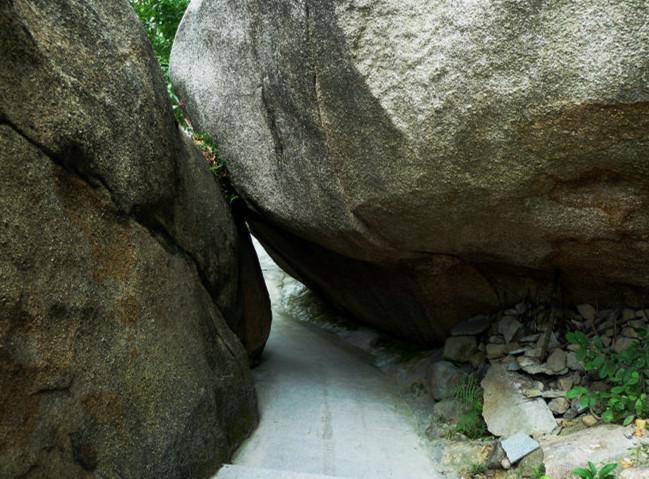 合掌枕流”是由兩座巍峨巨石相挨疊成的,形狀很像雙掌合在一起,所以古稱為“合掌石”。長壽仙井