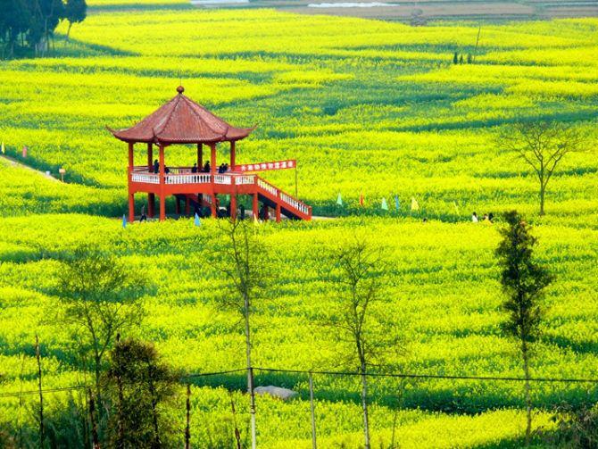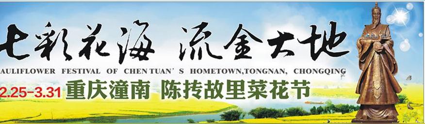 潼南菜花節(jié),潼南區(qū)位于四川盆底中部,地處重慶市西北部最前沿。自古歷來(lái)是中國(guó)的油菜之鄉(xiāng)。自2008年以來(lái),潼南區(qū)連續(xù)舉辦了八屆菜花節(jié),30萬(wàn)畝油菜花吸引四方眼球,引來(lái)八方游客。2009年,潼南被評(píng)為“中國(guó)最美的油菜花?!敝?;2010年,被評(píng)為“重慶十大春季旅游目的地”之一。潼南區(qū)第四屆菜花節(jié)以“走進(jìn)‘三色’潼南 暢游七彩花?!睘橹黝},深度打造,提檔升級(jí),重慶·潼南 陳摶故里菜花節(jié)已于2011年3月6日盛大開(kāi)幕,迄今已經(jīng)成功舉辦八屆。