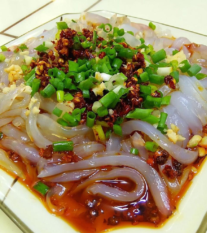 四川涼粉是用粉、涼開水、煮開的水、糖、陳醋、醬油、蒜蓉、蔥花、油辣子作為食材制作而成的四川省傳統(tǒng)的地方小吃。制作簡單,營養(yǎng)豐富,口感良好。