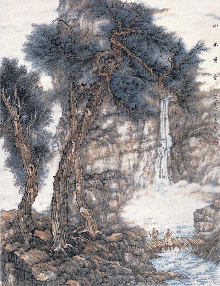 2001年 應(yīng)邀創(chuàng)作《溪山行者范寬像》參加“黃河”主題全國(guó)中國(guó)畫(huà)大展;