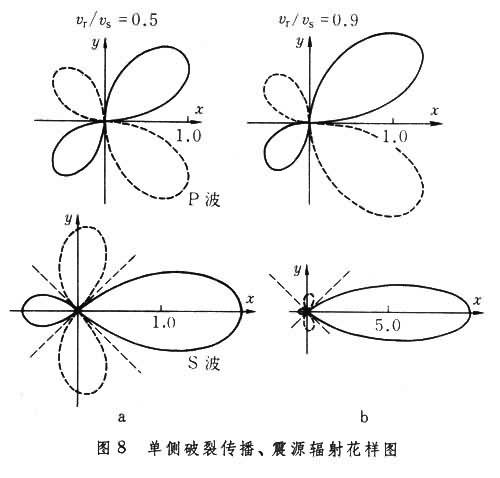 有時(shí)能從實(shí)際地震波記錄中分辨出上述振幅和周期(或頻譜)隨方位變化的不對稱性,由此可鑒別出哪個(gè)節(jié)面是斷層面,并求出破裂傳播長度和傳播速度等參數(shù)。