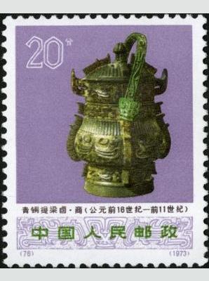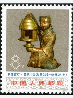 文物是指遺存在社會(huì)上或埋藏在地下的歷史文化遺物,它一般包括:與重大歷史事件、革命運(yùn)動(dòng)和重要人物有關(guān)的、具有紀(jì)念意義和歷史價(jià)值的建筑物、遺址、紀(jì)念物等;具有歷史、藝術(shù)、科學(xué)價(jià)值的古文化遺址、古墓葬、古建筑、石窟寺、石刻等;各時(shí)代有價(jià)值的藝術(shù)品、工藝美術(shù)品;革命文獻(xiàn)資料以及具有歷史、藝術(shù)和科學(xué)價(jià)值的古舊圖書(shū)資料;反映各時(shí)代社會(huì)制度、社會(huì)生產(chǎn)、社會(huì)生活的代表性實(shí)物;反革命的歷史罪證等。出土文物則是專指從地下發(fā)掘出來(lái)的歷代文物。文革初期,在極“左”思潮的泛濫下,紅衛(wèi)兵破“四舊”,使全國(guó)各地許多文化古跡遭到嚴(yán)重破壞,損失無(wú)法彌補(bǔ)。所以,在文革尚未結(jié)束便能發(fā)行這樣一套郵票,其意義是深遠(yuǎn)的。郵票畫(huà)面以柔和的底色來(lái)襯托精美的文物,古色古香,形象逼真,畫(huà)面簡(jiǎn)潔,主體突出,質(zhì)感極強(qiáng)。主圖下方橫條卷草紋飾上的文字,在構(gòu)圖上發(fā)揮了穩(wěn)定、裝飾作用。而面值的位置分布,也靈活多變,堪稱是文革期間設(shè)計(jì)頗為出色的一套郵票。
