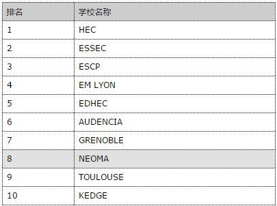 學校排名2014年法國商學院排名諾歐排名第8。[1]