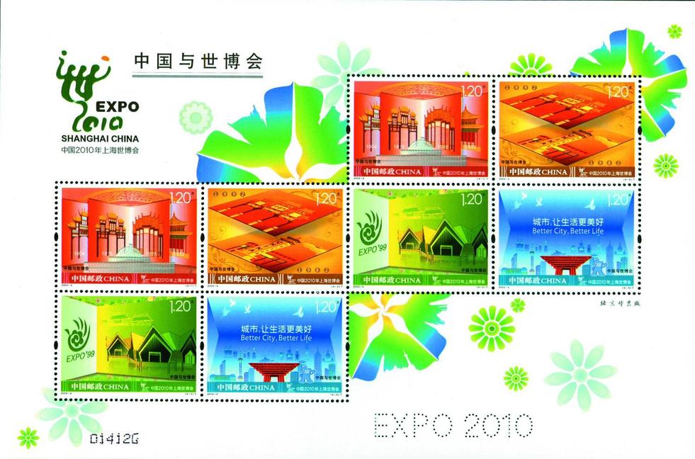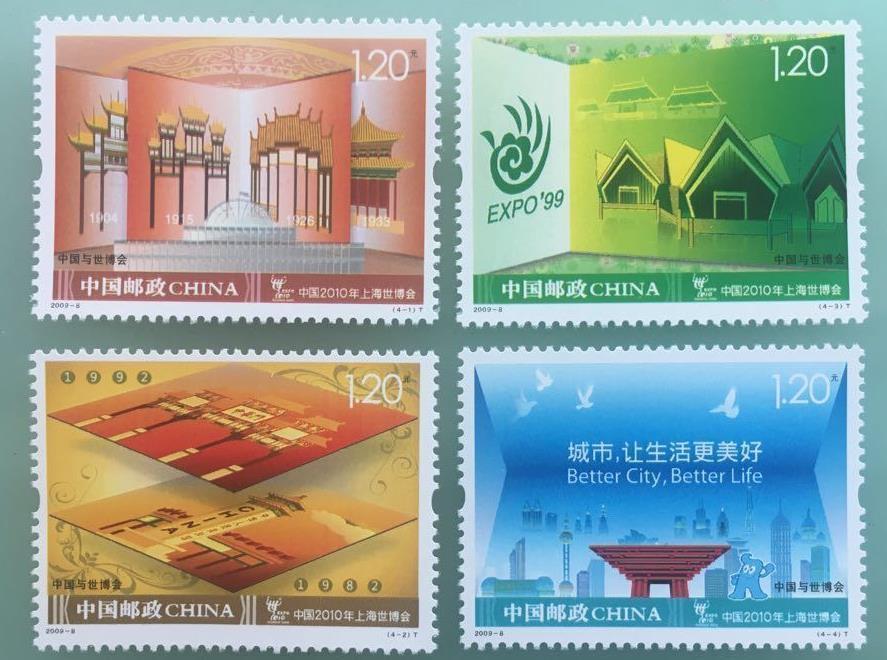 《中國(guó)與世博會(huì)》是中國(guó)郵政為了紀(jì)念和迎接上海世博會(huì)在中國(guó)舉辦,于2009年5月1日發(fā)行的,志號(hào)為2009-6的特種郵票。 郵票全套四枚,圖案分別以中國(guó)歷次參加世博會(huì)的中國(guó)館、新中國(guó)重返世博會(huì)后中國(guó)館代表建筑、1999年昆明世界園藝博覽會(huì)“人與自然館”、2010年世博會(huì)中國(guó)館為視覺(jué)主體。