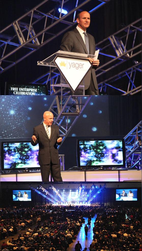 耶格將生意升華到一個(gè)藝術(shù)的高度,其年會(huì)規(guī)模由70年代初1萬(wàn)人到90年代初在亞特蘭大的佐治亞體育場(chǎng)7.5萬(wàn)人,到分散到美國(guó)六個(gè)地點(diǎn)獨(dú)立進(jìn)行。美國(guó)還真沒(méi)有一個(gè)足夠大的體育場(chǎng)館能容得下耶格系統(tǒng)內(nèi)想?yún)⒓哟髸?huì)的人。這一現(xiàn)象不僅僅發(fā)生在美國(guó),如果到世界各地的耶格網(wǎng)絡(luò)去看一看的話,你會(huì)發(fā)現(xiàn)他的小組每年都會(huì)召開(kāi)兩次到十幾次1.5萬(wàn)人以上直銷(xiāo)商參加的年度會(huì)議。公司管理
