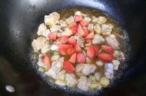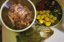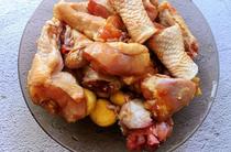 板栗蒸雞,肥母雞1只,板栗200克,醬油、料酒、雞湯、冰糖各適量。