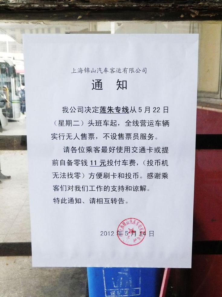 蓮朱專線公交車 朱涇汽車站→蓮花路地鐵站(北廣場) 所屬公司:上海錦山汽車客運有限公司
