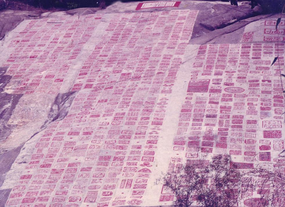 福建漳州云洞巖摩崖《道德經(jīng)》篆刻1998年6月,荊鴻先生歷時八個半月之久完成了篆刻《道德經(jīng)》“上墻”的歷史創(chuàng)舉。這墻是福建漳州的一處崖壁。33米高、18米寬的云洞巖上,刻下完整的《道德經(jīng)》,為當(dāng)時世界上最大的篆刻作品,即“云洞巖摩崖篆刻”。被譽(yù)為中國具有里程碑式的篆刻藝術(shù)作品。