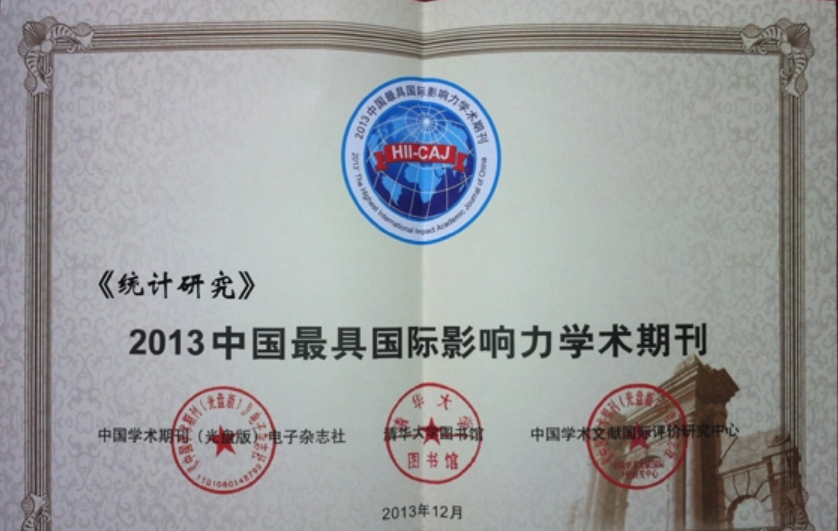 2004年,在中華人民共和國(guó)新聞出版總署舉辦的第三屆國(guó)家期刊獎(jiǎng)的評(píng)選活動(dòng)中,《統(tǒng)計(jì)研究》獲“國(guó)家期刊獎(jiǎng)百種重點(diǎn)期刊”。