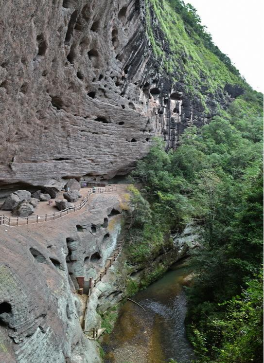 景區(qū)內(nèi)古剎始建于北宋時期的“天成巖寺”“獅子巖寺”“會圣巖寺”均建在崖穴里。天成巖寺在天成巖峰頂。峰頂兀立一塊巨崖,崖底是一洞穴,面積200余平方米,天成巖寺就建在其中。詩云:“寺入山崖石做瓦,佛觀殿外嶂連崖。碧空崖上水滴泄,勝似陽春雨打花?!?/p>