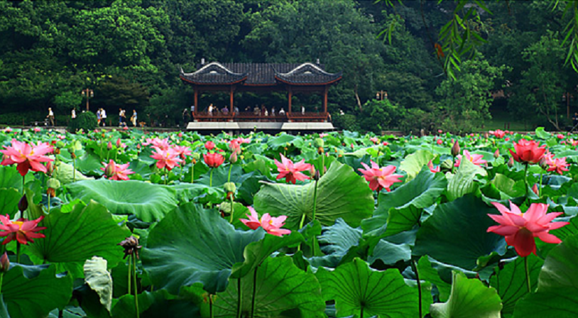 文人們常常以“萬(wàn)花競(jìng)放,百花爭(zhēng)艷”等詞句給予繁花以美的贊頌,那么在西湖的荷花面前,這里百花的表現(xiàn)怎么樣呢?“道岸群芳暗妒”也!就是說(shuō),在西湖水岸上道路的兩旁,盡管繁花似錦,群芳競(jìng)艷,可是一見(jiàn)到夏日開(kāi)放的荷花的動(dòng)姿靜態(tài),美妙無(wú)比,那么令游人神往、拍照和追逐,群芳們只能認(rèn)輸,但心里暗暗的妒忌卻無(wú)法消除。