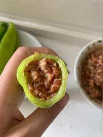 青椒釀肉是一道傳統(tǒng)川菜是由青椒、主要原材料有青椒、豬肉碎、馬蹄等,輔料有蔥姜蒜、雞蛋、淀粉、料酒、蠔油、生抽、老抽、糖、香醋等,口感麻辣。