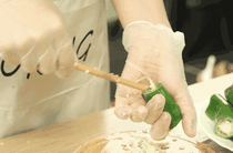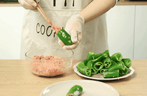 步驟四 | 將做好的肉餡用筷子塞到尖椒中,注意肉餡料要塞滿點。 |