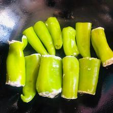步驟四 | 起鍋倒入少許色拉油,放入釀好青椒。 |