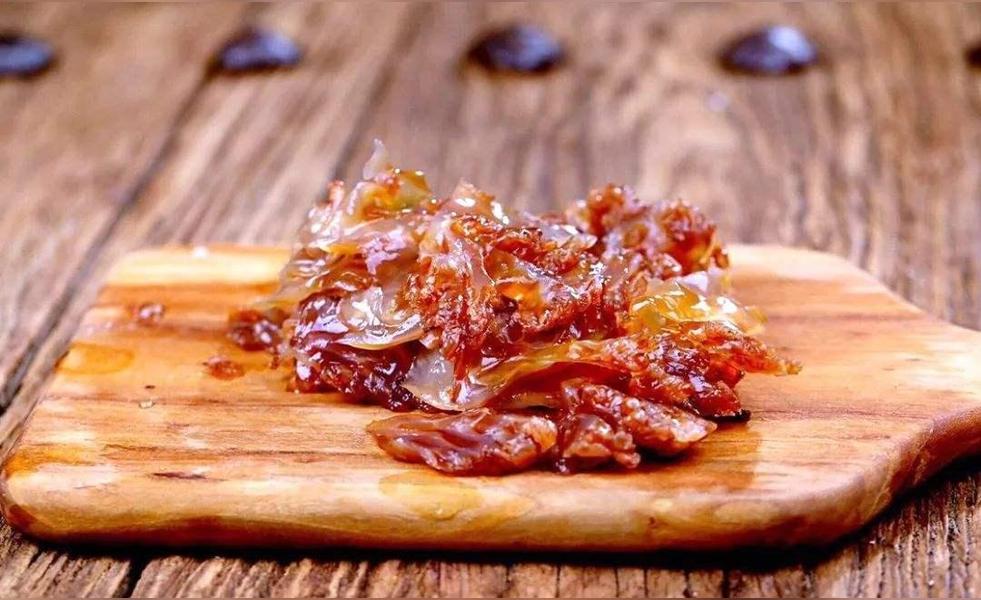 (2)海蜇頭:呈紅琥珀色,有光澤;無泥沙、碎桿及夾雜物;肉質(zhì)堅(jiān)實(shí)有彈性,口感脆嫩。