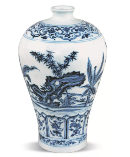 玉壺春瓶造型和元代基本相同,也有大小兩種,只是頸部豐滿一些,腹部略下沉,圈足低矮。